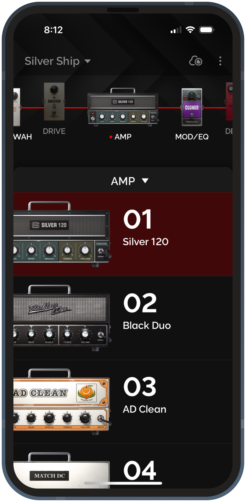 Choose up to 3 pre-amp effects, 3 post-amp effects, and 1 amp model for each preset