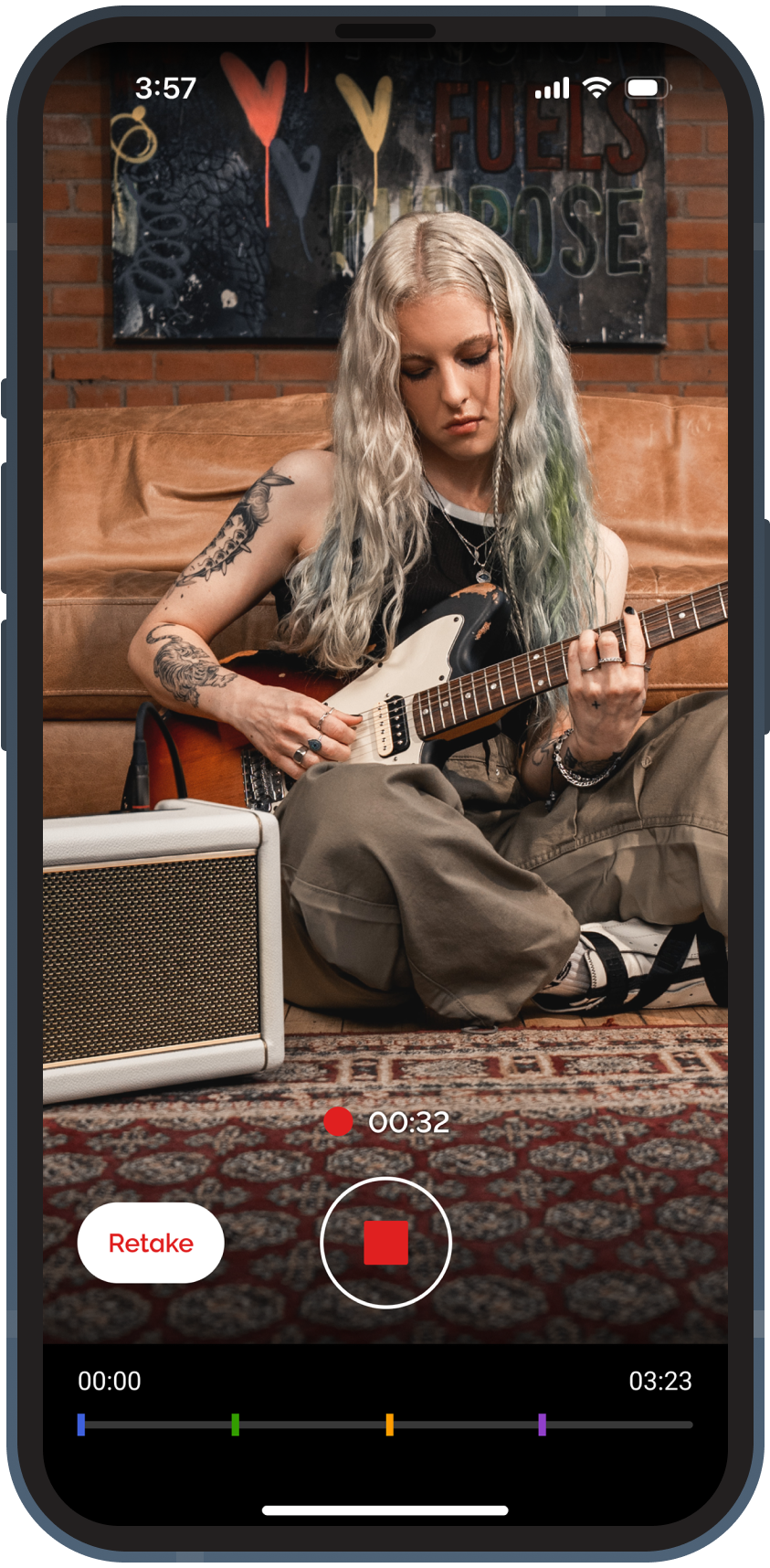 On-Signal Mode (Click Off): free length,it will automatically start recording when Spark 2 detects a guitar signal, users tap on the record button to stop recording