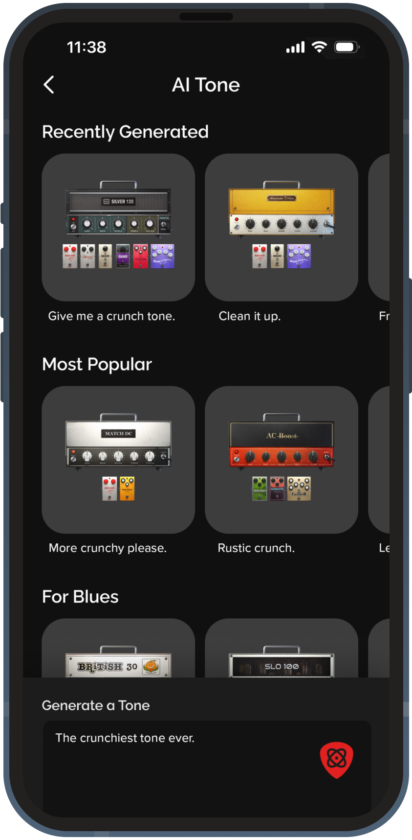 Dial in your perfect tone with the help of AI, offering tailored sound options based on your prompts.